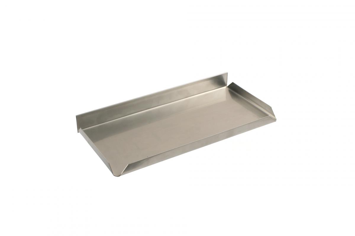 Stainless steel. For Wall Rail System, to about 3 kg Load, Folded from one Piece, Open Edges, Rounded Folding. Other Sizes on Request.