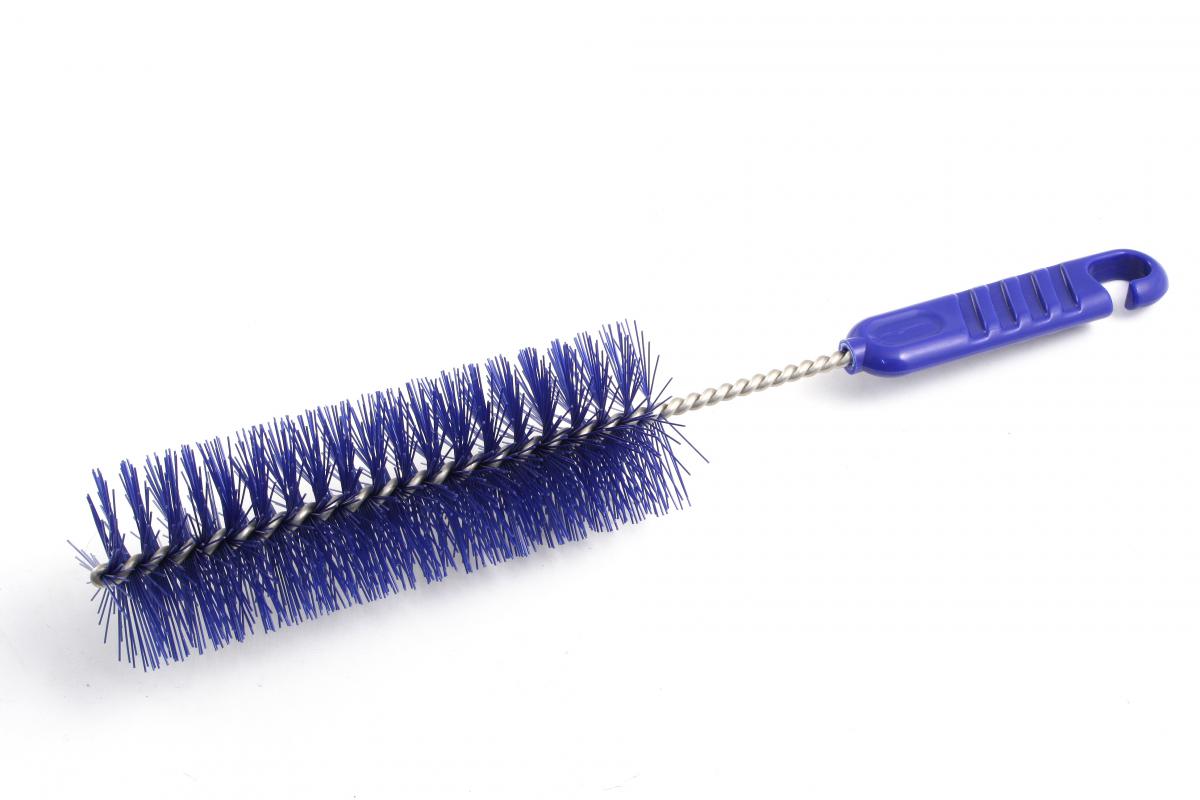 Polyester PBT 0.50. Stainless steel wire, handle color like bristles.